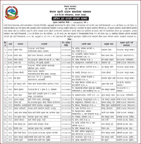 आफूखुसी कार्यालयमा गैर हाजिर रहेको र खोजतलास गर्दा गराउँदा तथा प्रहरी नियमावली, २०७१ को नियम ११५ को देहाय (२) बमोजिम प्रक्रिया पूरा गरी सूचना टाँस भइसक्दा समेत कार्यालयको सम्पर्कमा नआएकोले हाजिर हुन आउनेबारे यो सूचना प्रकाशित गरिएको हो ।