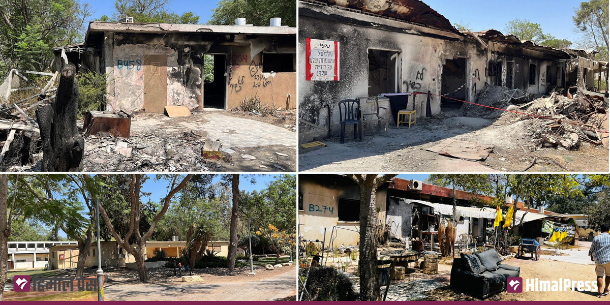 तेलअभिभ पुगेको पर्सिपल्ट अर्थात् २१ साउनमा हामी किबुज (संगठित भएर काम गर्ने कम्युन) पुग्यौँ। जहाँ हमासको आक्रमणमा १० नेपाली विद्यार्थी मारिएका थिए। कृषिमा सामूहिक काम गर्दा रहेछन्। बस्ने घर भिन्नभिन्न थिए। खाने एकै ठाउँमा र काम गर्ने सबै मिलेर। सुरुमा हामी गाजाको सीमा क्षेत्रबाट तीन किलोमिटर नजिक रहेको निर ओज किबुजमा पुग्यौँ। त्यहाँबाट गाजापट्टी प्रस्टै देखिन्थ्यो। त्यहाँ हामीले डाइनिङ हल हेर्‍यौँ, जहाँ सन् २०२३ अक्टोबर ७ मा गोली हान्दै विद्रोहीहरू भित्र पसेको अनुमान लगाउन सकिन्छ। गोली लागेर फुटेका सिसाको प्वाल टालिएको थिएन। एकजना नेपाली मुलका इजरायली विजय राईले त केही बोल्नै नसकेर डाइनिङबाट भक्कानिँदै जिउ कमाउँदै बाहिर निस्के।