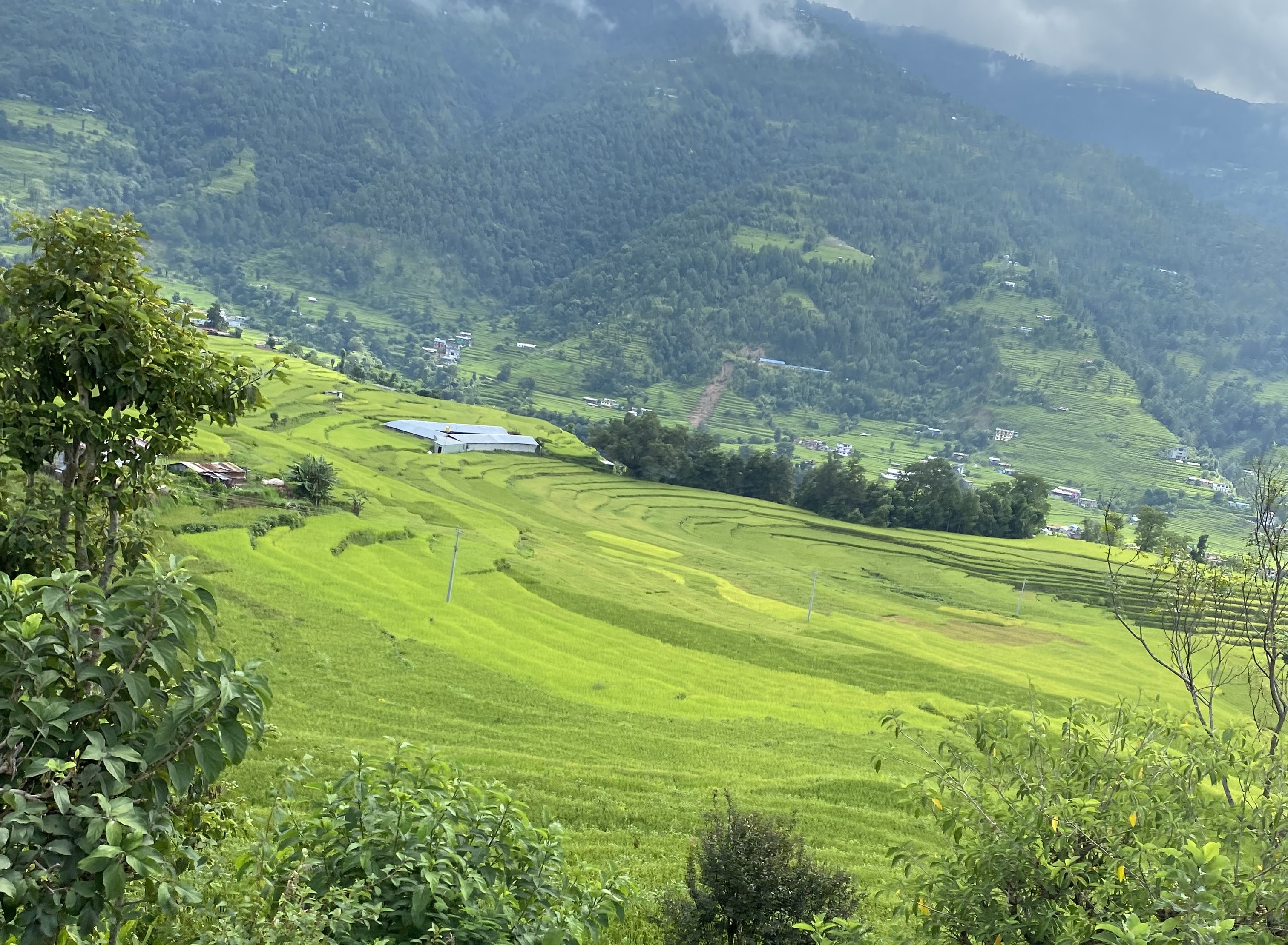 चनौटेबाट माथि लागेपछि धानको विशाल फाँट देखिए। लहलह झुलेका धानको फाँटको सुन्दरता हेर्न लायक थियो। कतै भर्खर पोटाएको, कतै पाक्न ठिक्क परेको, कतै हरियो बोटको गह्राहरू र कतै पहेँलै झुलेका धानका बालाले शोभित भूमि। बल्ल लाग्यो मेलम्चीमा बासमती फल्दो रहेछ। मेलम्चीको बासमती काठमाडौँलाई पनि दिन पुग्दो रहेछ। सँगैका साथी पनि खुसी देखिए।