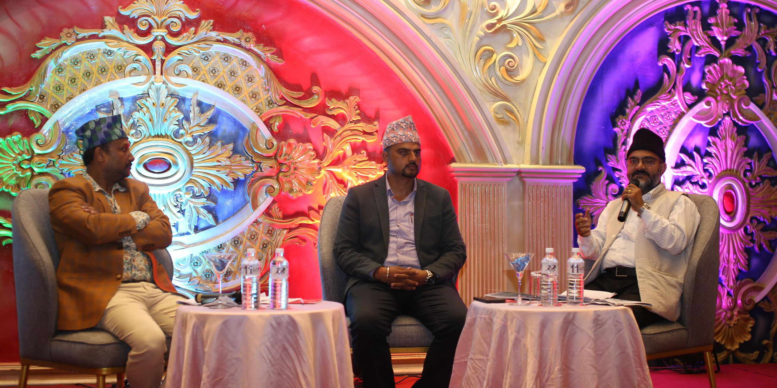 नेपालगन्ज उपमहानगर मेयर प्रशान्त विष्ट, काेहलपुर नगरपालिका मेयर पूर्ण आचार्य र कार्यक्रम सञ्चालक झलक गैरे। (बायाँबाट दायाँ)
