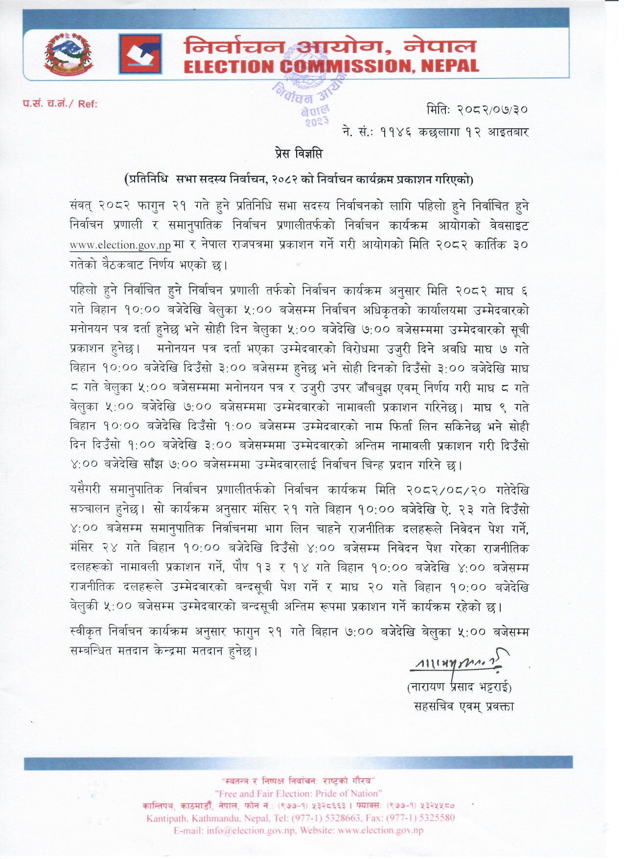 निर्वाचन कार्यक्रम सार्वजनिक, माघ ६ गते उम्मेदवारको मनोनयन दर्ता