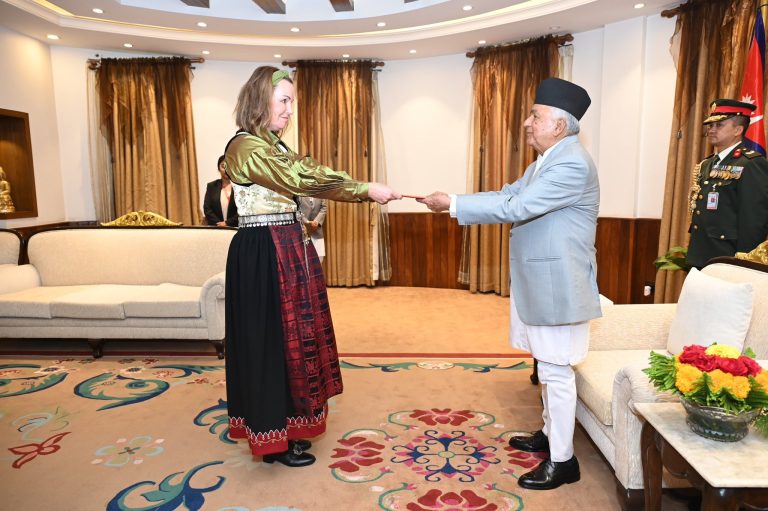 काठमाडौँ- राष्ट्रपति रामचन्द्र पौडेलसमक्ष चार देशका नवनियुक्त राजदूतले आ-आफ्नो ओहोदाको प्रमाणपत्र पेस गरेका छन्।