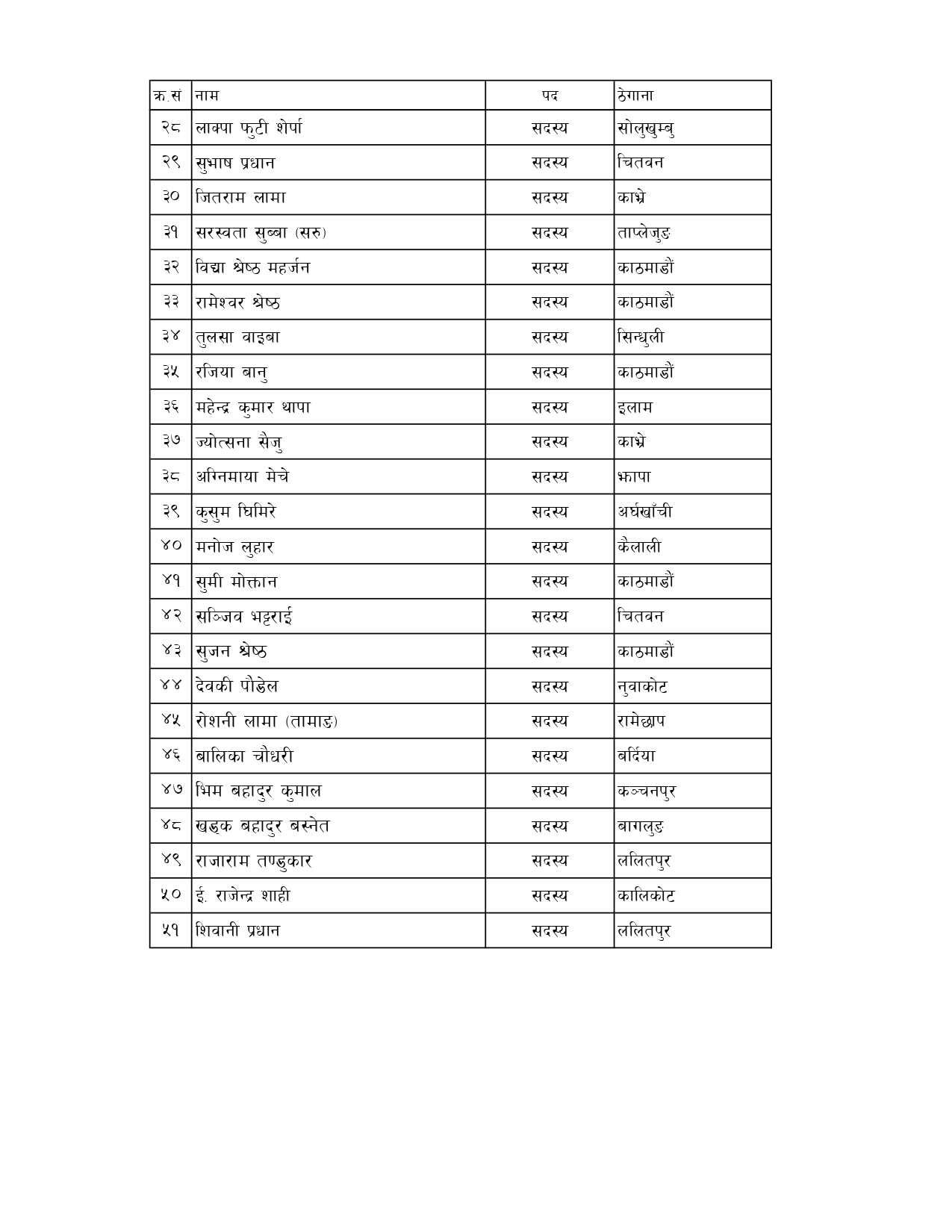मंगलबार पेस गरिएको अद्यावधिक विवरणअनुसार अध्यक्षमा पूर्वसचिव अनुपकुमार उपाध्यायलाई राखिएको छ। अहिले ५१ सदस्यीय केन्द्रीय समिति बनाइएको छ।