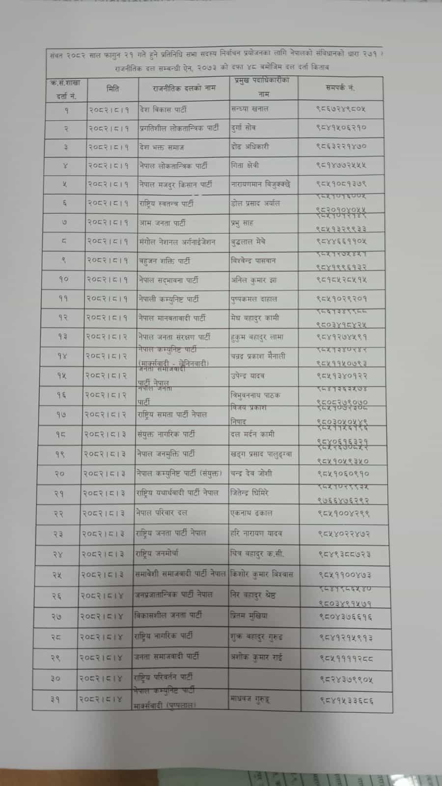 सोमबार मात्रै आठवटा दल दर्ता भएका छन्। दर्ताको निवेदन दिने समय यही मंसिर १० गतेसम्म तोकिएको छ।