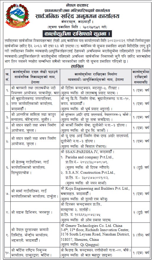 एक वर्षदेखि तीन वर्षको लागि कालो सूचीमा राखिएका ती निर्माण कम्पनीले यस अवधिमा अब कुनै पनि खरिद कारबाहीमा भाग लिन पाउने छैनन्।