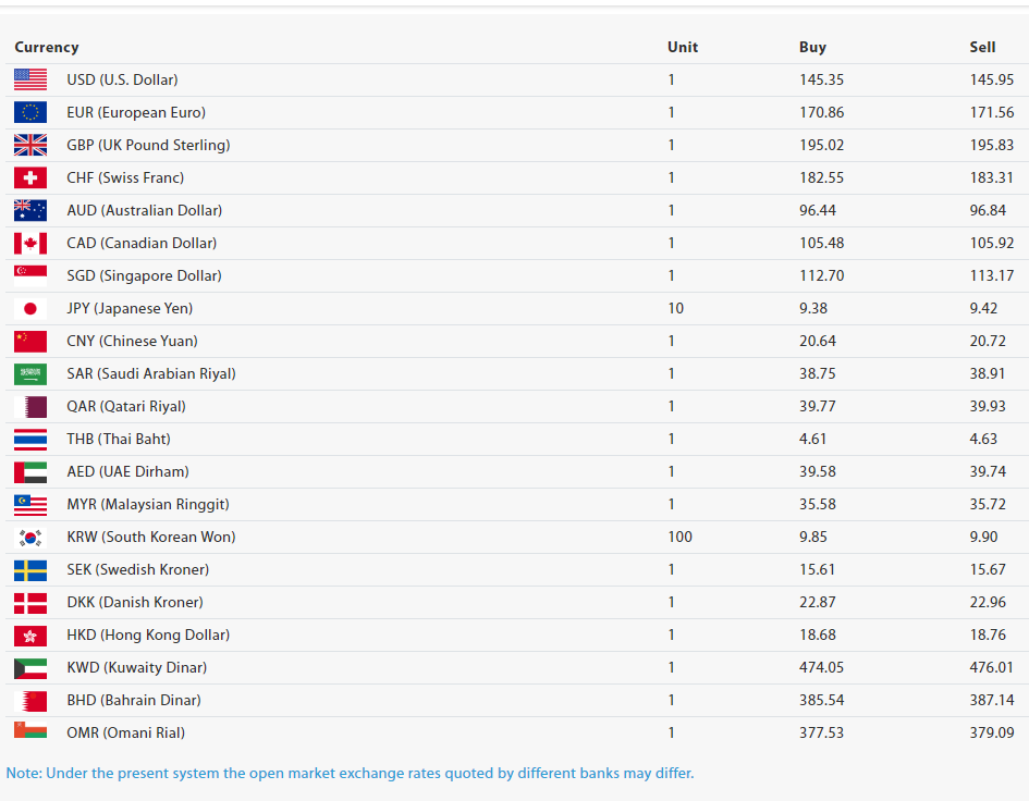 काठमाडौँ- नेपाल राष्ट्र बैंकले आज (बुधबार)का लागि विदेशी मुद्राहरूको विनिमयदर निर्धारण गरेको छ। आज अमेरिकी डलर १ को खरिददर १४५ रुपैयाँ ३५ पैसा र बिक्रीदर १४५ रुपैयाँ ९५ पैसा पुगेको छ। अमेरिकी डलरको यो विनिमयदर हालसम्मकै सबैभन्दा महँगो हो।