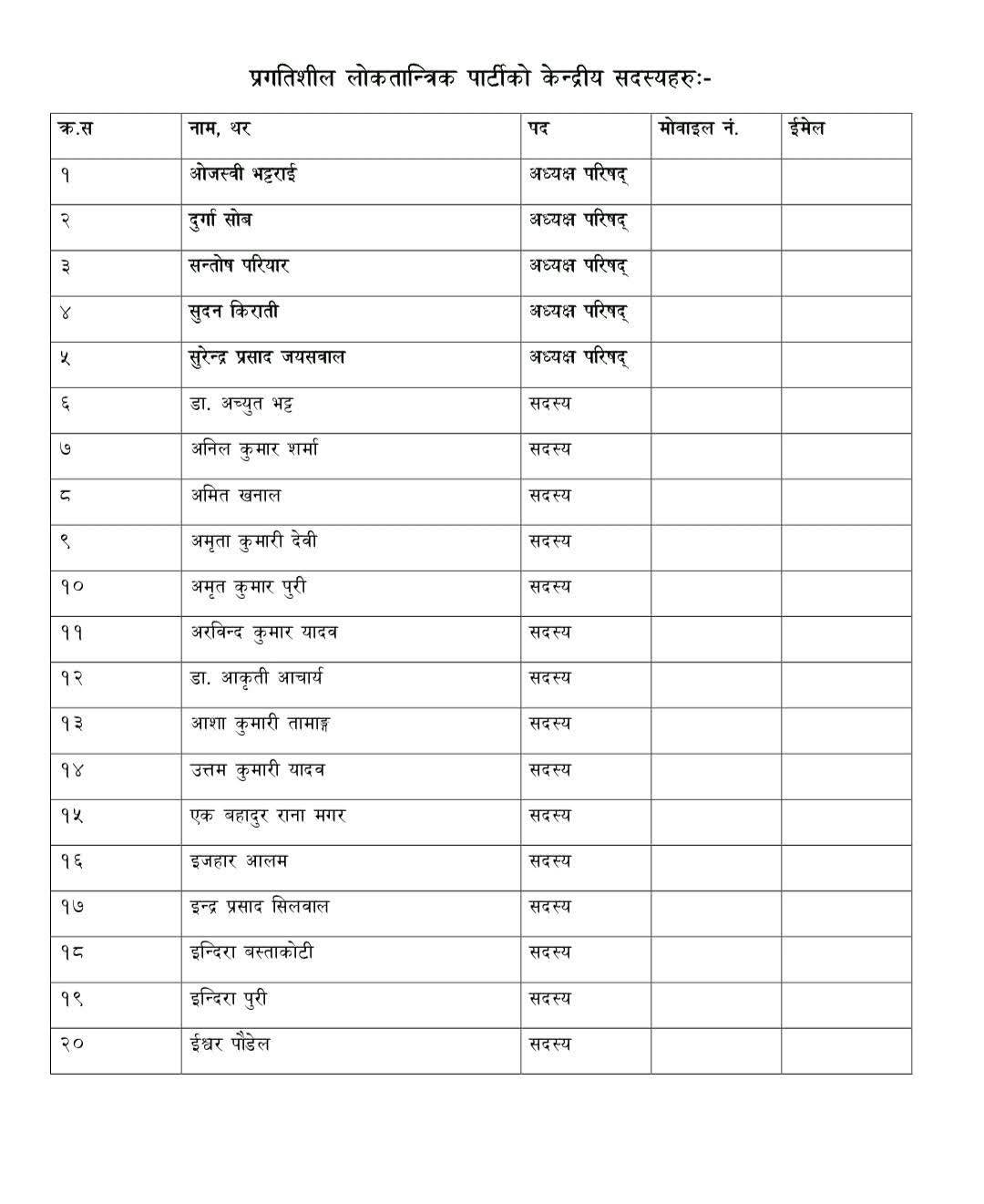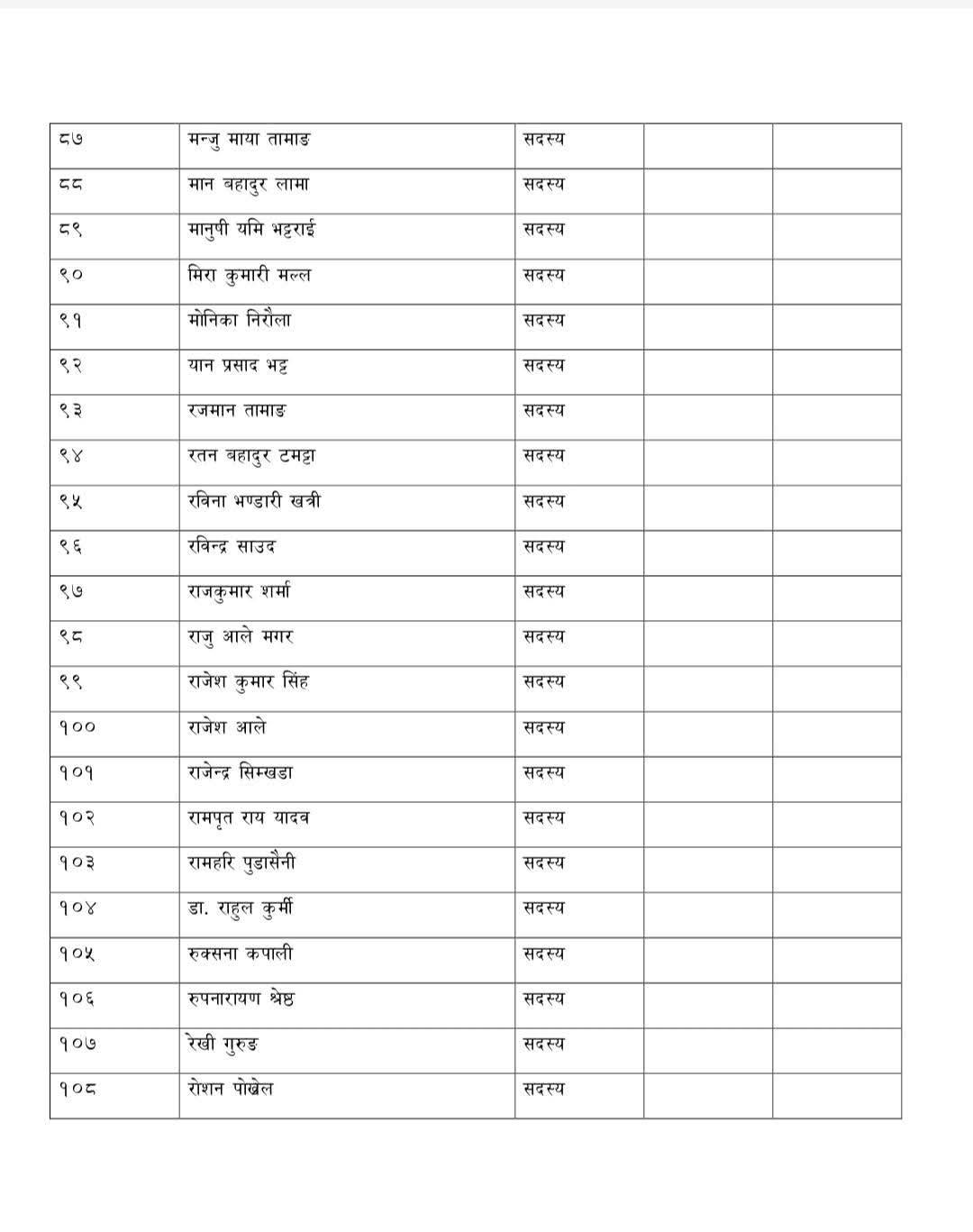 प्रलोपाले सार्वजनिक गर्‍यो केन्द्रीय समिति सदस्यहरू (नामावलीसहित)