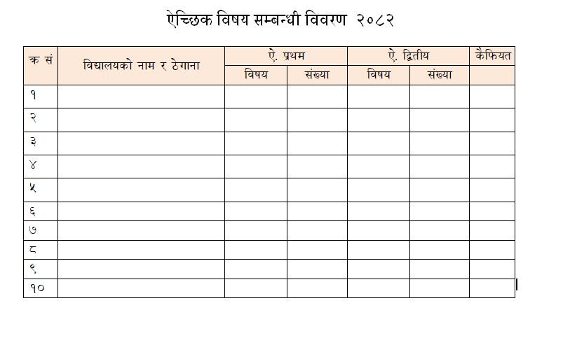 ऐच्छिक विषय विवरण तत्काल पठाउन विद्यालयहरूलाई आग्रह