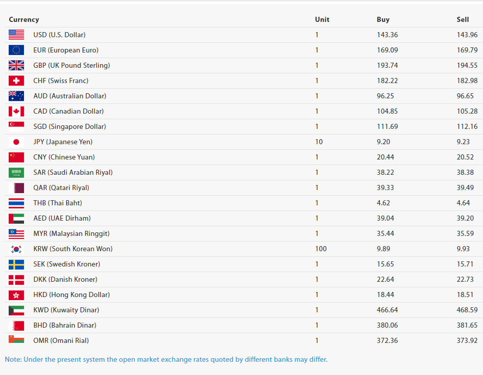 आज अमेरिकी डलर १ को खरिददर १४३ रुपैयाँ ३६ पैसा र बिक्रीदर १४३ रुपैयाँ ९६ पैसा छ। हिजो अमेरिकी डलर १ को खरिददर १४३ रुपैयाँ १५ पैसा र बिक्रीदर १४३ रुपैयाँ ७५ पैसा थियो।
