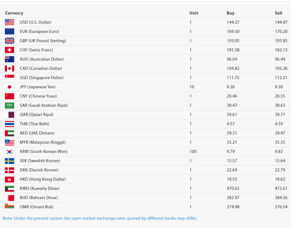 आज अमेरिकी डलर १ को खरिददर १४४ रुपैयाँ ३७ पैसा र बिक्रीदर १४४ रुपैयाँ ९९ पैसा छ। आज युरो १ को खरिददर १६९ रुपैयाँ ५० पैसा र बिक्रीदर १७० रुपैयाँ २० पैसा छ। हिजो युरो १ को खरिददर १६९ रुपैयाँ २४ पैसा र बिक्रीदर १६९ रुपैयाँ ९५ पैसा थियो।