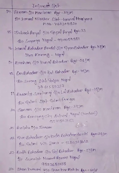 नयाँदिल्लीस्थित नेपाली दूतावासका अनुसार आगलागीमा परी घाइते भएकामध्ये सात जना जति अस्पताल भर्ना भएका छन्। उनीहरूको उपचार भइरहेको छ। सामान्य अवस्थामा रहेका २० जना फर्किसकेका जनाइएको छ।