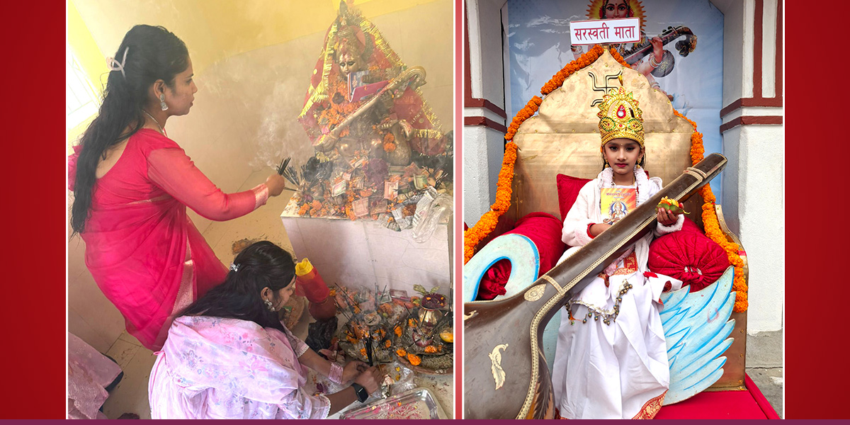 अक्षरारम्भ र सरस्वती पूजा गरिँदै (तस्बिरहरू)