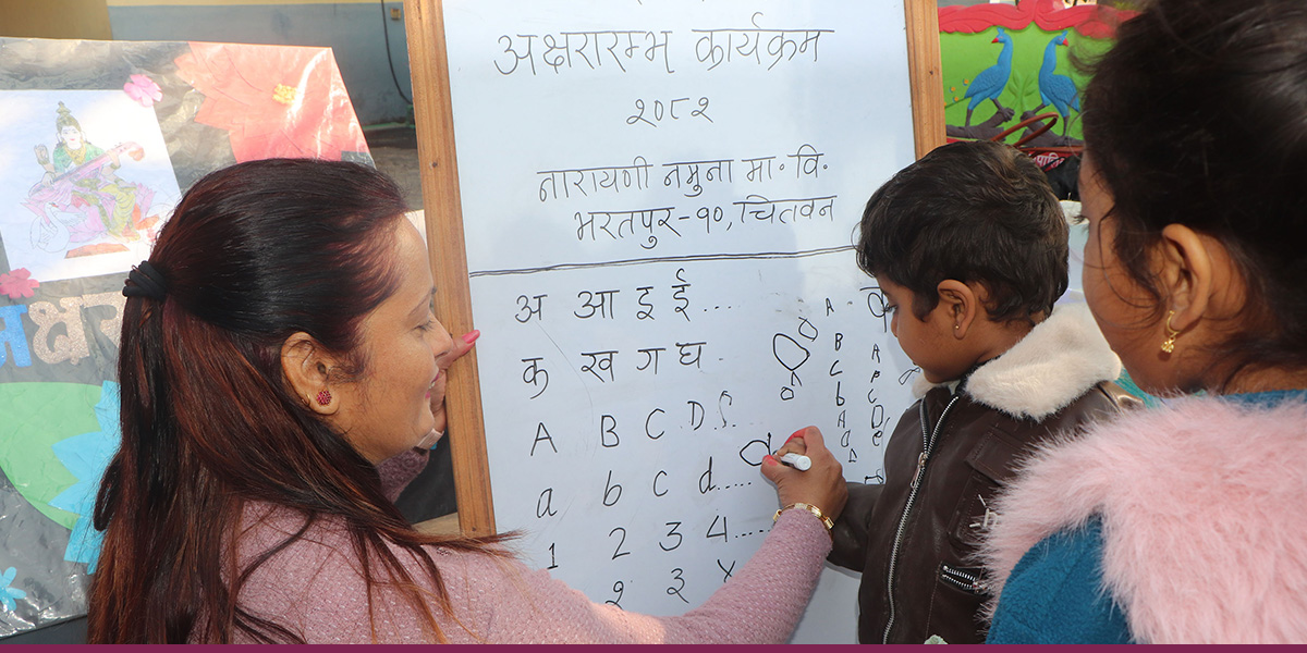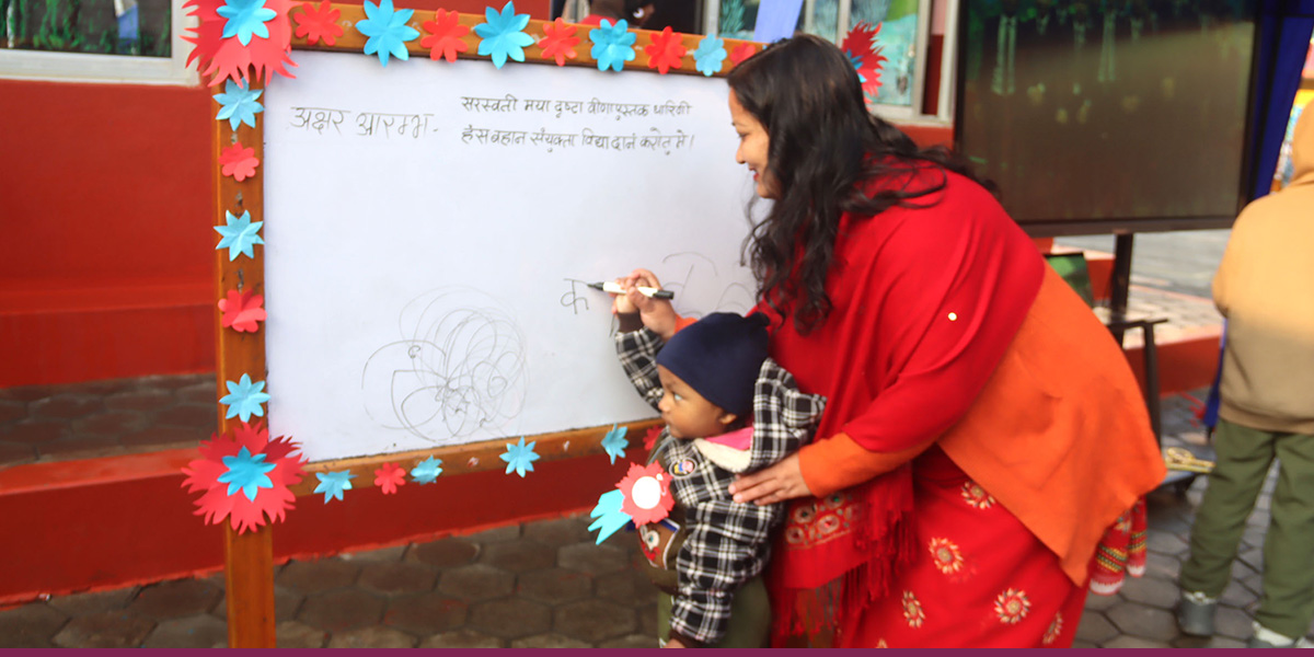 अक्षरारम्भ र सरस्वती पूजा गरिँदै (तस्बिरहरू)