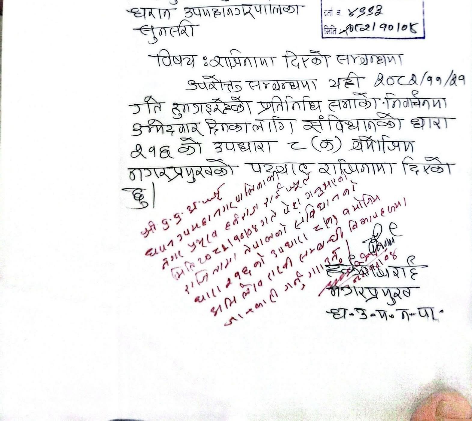 यसै गरी धरान-१७ का वडाध्यक्ष सूर्य भट्टराई (मनोज)ले पनि राजीनामा दिएका छन्। भट्टराईलाई प्रचण्ड नेतृत्वको नेकपाले सुनसरी क्षेत्र नं. १ बाट प्रतिनिधिसभा सदस्यको टिकट दिएको छ।