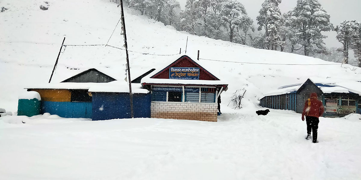 काठमाडौँ- मौसममा आएको परिवर्तनसँगै देशका विभिन्न हिमाली जिल्लामा हिमपात सुरु भएको छ। रसुवा, गोरखा, बैतडी, डोल्पा, मनाङ, मुस्ताङ, रुकुमपूर्व, बझाङ, म्याग्दीलगायतका हिमाली जिल्लामा भारी हिमपात भइरहेको छ।