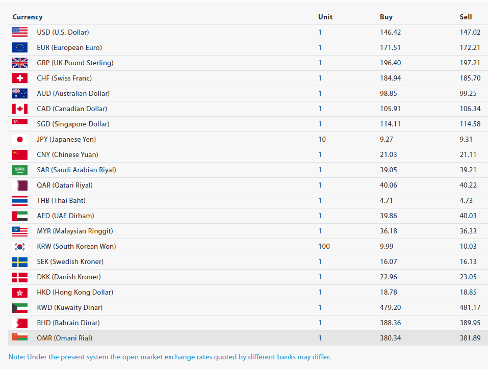 काठमाडौँ- नेपाल राष्ट्र बैंकले आज (बिहीबार) का लागि विदेशी मुद्राहरूको विनिमयदर निर्धारण गरेको छ। आज अमेरिकी डलर १ को खरिददर १४६ रुपैयाँ ४२ पैसा र बिक्रीदर १४७ रुपैयाँ ०२ पैसा छ। अमेरिकी डलरको यो विनिमयदर अहिलेसम्मकै सबैभन्दा महँगो हो।