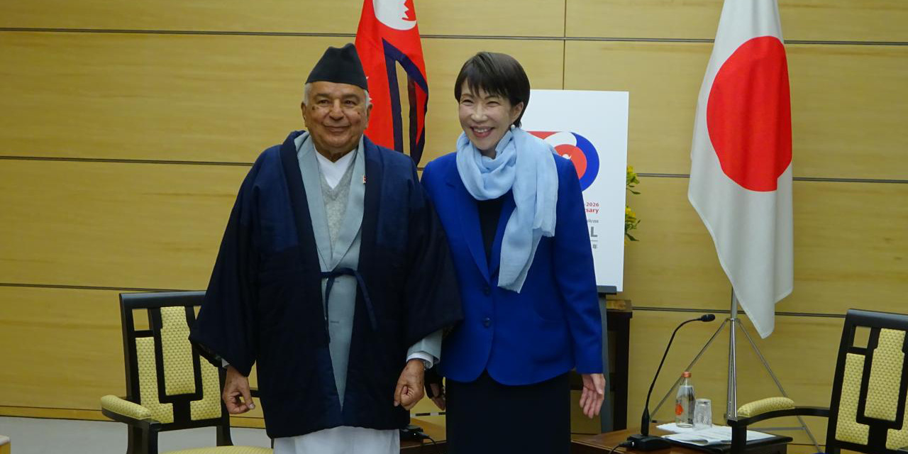काठमाडौँ- राष्ट्रपति रामचन्द्र पौडेलले नेपाल-जापानबीच कूटनीतिक सम्बन्ध स्थापना भएदेखिका सम्बन्धहरू अझ निकटता र गहिरो मित्रताका साथ अघि बढिरहेको बताउँदै यो सम्बन्ध र सहयोगलाई सुदृढ गर्न जापानी नेतृत्वसँग मिलेर काम गर्न चाहेको बताएका छन्। जापानको औपचारिक भ्रमणमा रहेका राष्ट्रपति पौडेलसँग जापानका प्रधानमन्त्री तकाइची सनायले आज (मंगलबार) गरेको शिष्टाचार भेटका अवसरमा राष्ट्रपति पौडेलले सो धारणा व्यक्त गरेका हुन्।