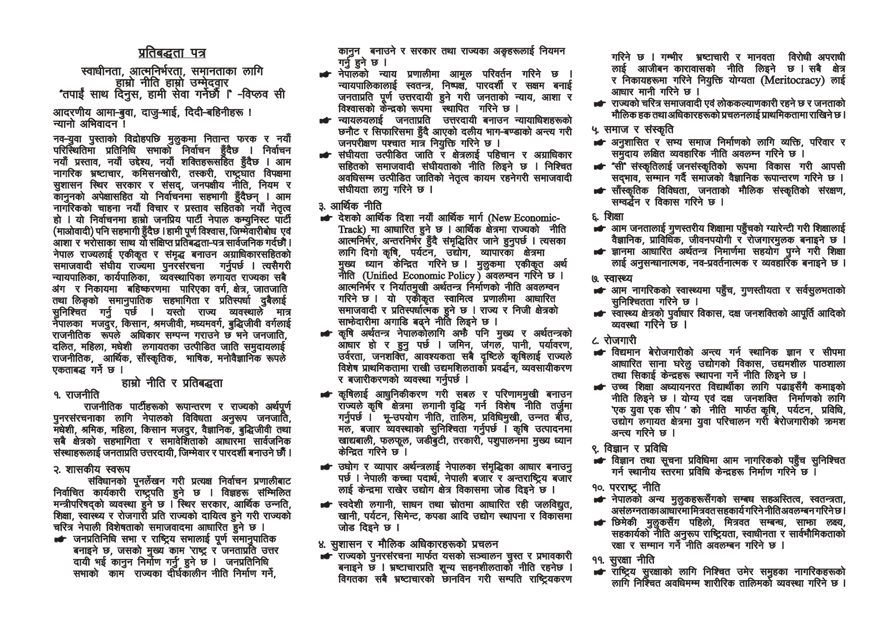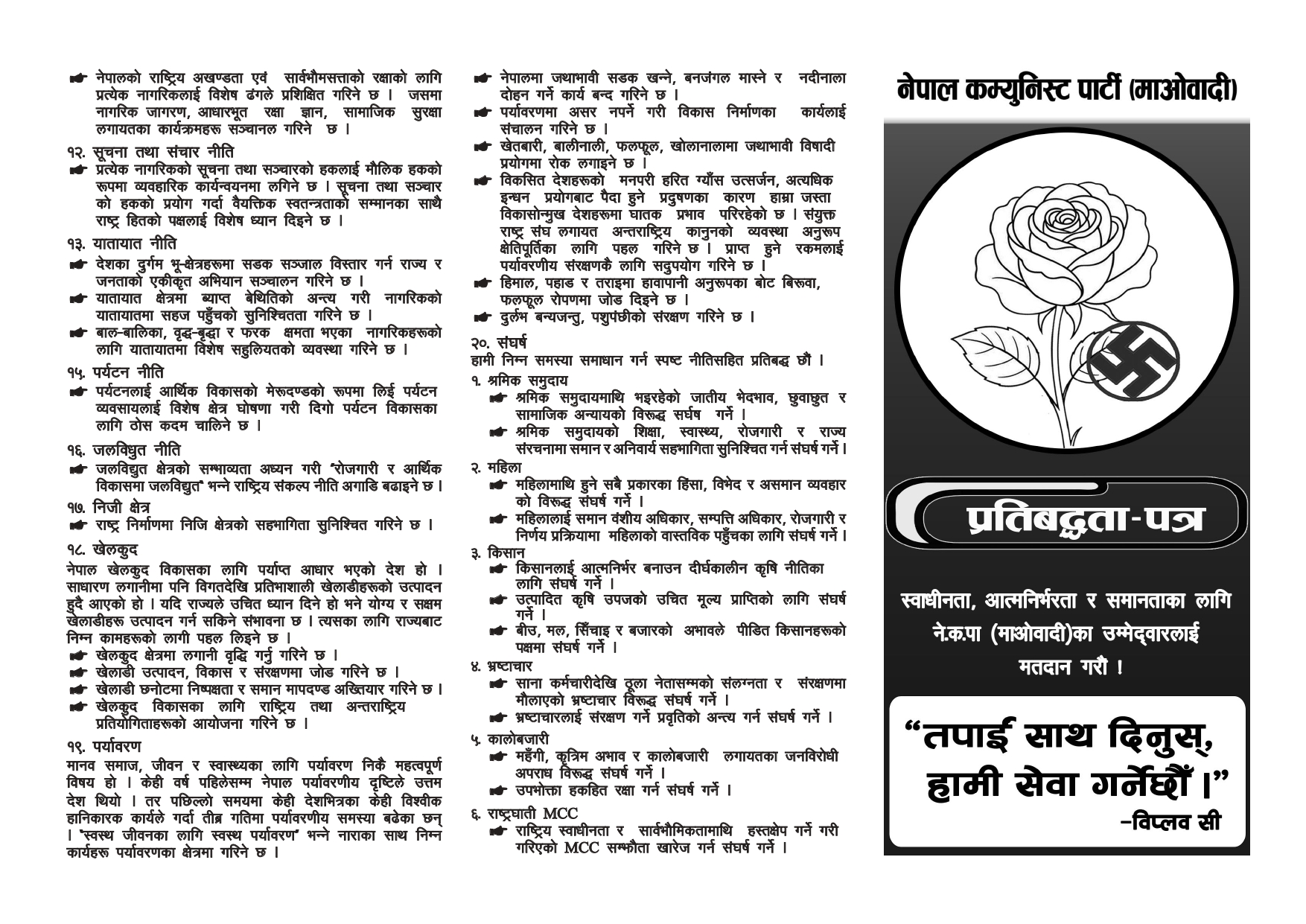 नेकपा (माओवादी) ले सार्वजनिक गर्‍यो चुनावी प्रतिबद्धता (पूर्णपाठसहित)