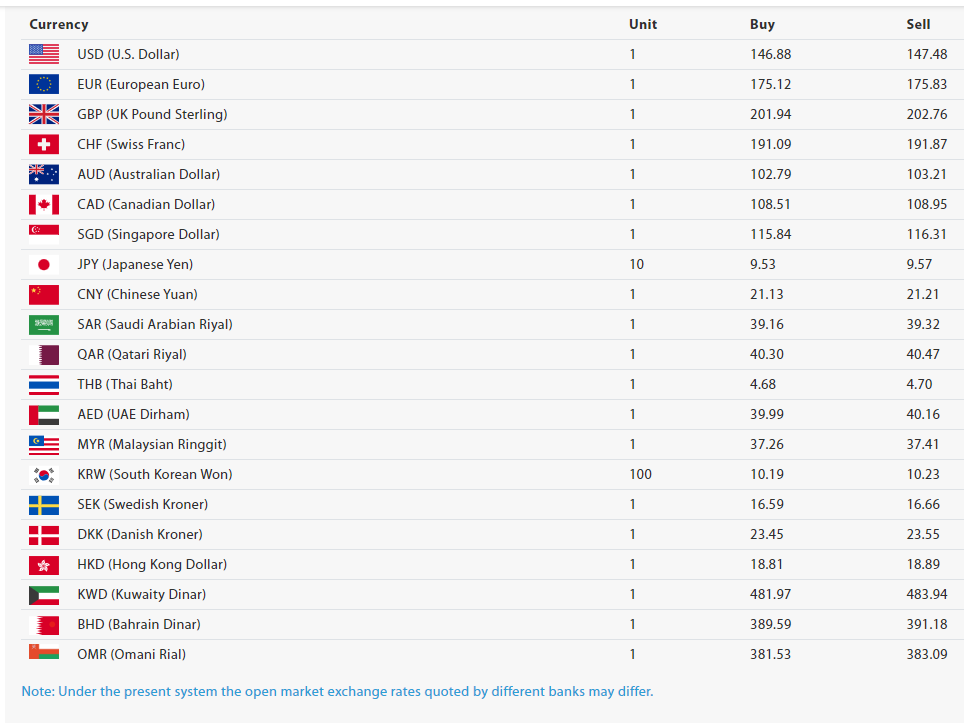 काठमाडौँ- नेपाल राष्ट्र बैंकले आज (आइतबार)का लागि विदेशी मुद्राहरूको विनिमयदर निर्धारण गरेको छ। आज अमेरिकी डलर उच्च मूल्यमै स्थिर छ। आज अमेरिकी डलर आज १ को खरिददर १४६ रुपैयाँ ८८ पैसा र बिक्रीदर १४७ रुपैयाँ ४८ पैसा छ। अमेरिकी डलरको यो मूल्य आजसम्मकै सबैभन्दा महँगो हो।