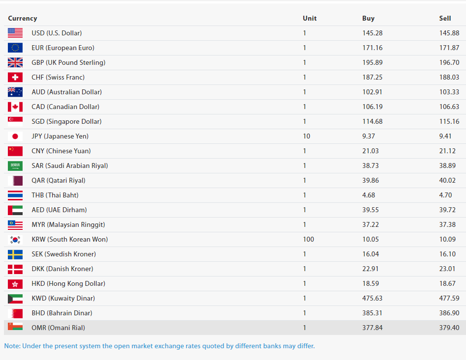 काठमाडौँ- नेपाल राष्ट्र बैंकले आज (सोमबार) का लागि विदेशी मुद्राहरूको विनिमयदर निर्धारण गरेको छ। राष्ट्र बैंकका अनुसार आज अमेरिकी डलर १ को खरिददर १४५ रुपैयाँ २८ पैसा र बिक्रीदर १४५ रुपैयाँ ८८ पैसा छ।