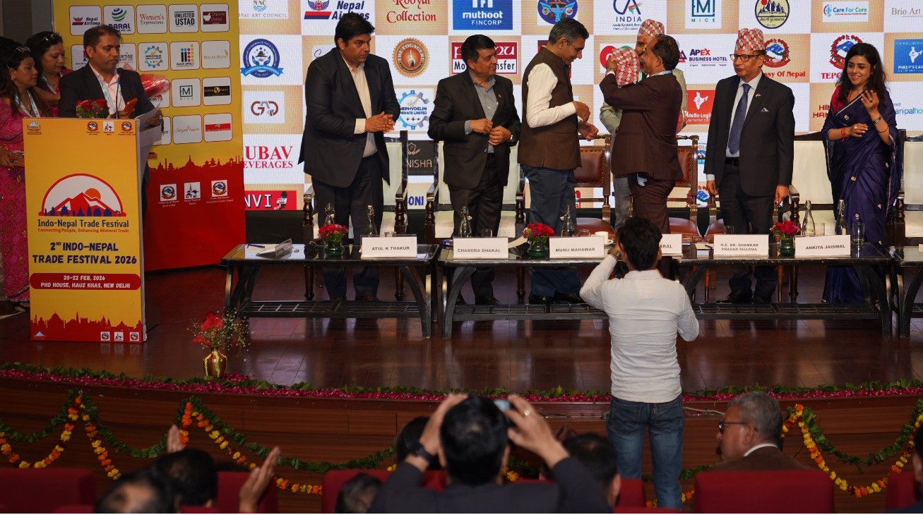 काठमाडौँ- नेपाल र भारतबीचको सदीयौँ पुरानो ऐतिहासिक सम्बन्धलाई व्यापार, लगानी र पर्यटनको आधुनिक उचाइमा पुर्याउने लक्ष्यका साथ नयाँदिल्लीमा ‘इन्डो-नेपाल ट्रेड फेस्टिभल’ को दोस्रो संस्करण जारी रहेको छ। शुक्रबार सुरु भएको महोत्सवमा विभिन्न विषयका बहस सत्र चलिरहेका छन्।