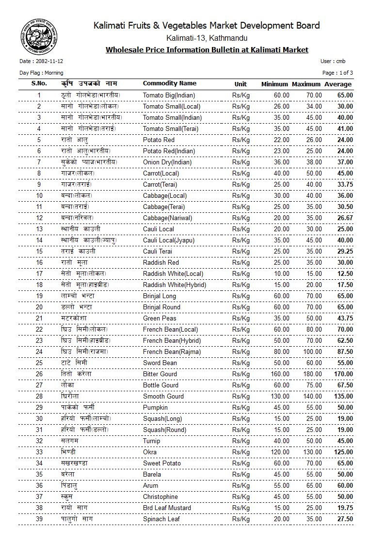 हेर्नुहोस् तरकारी तथा फलफूलहरूको आजको मूल्यसूची