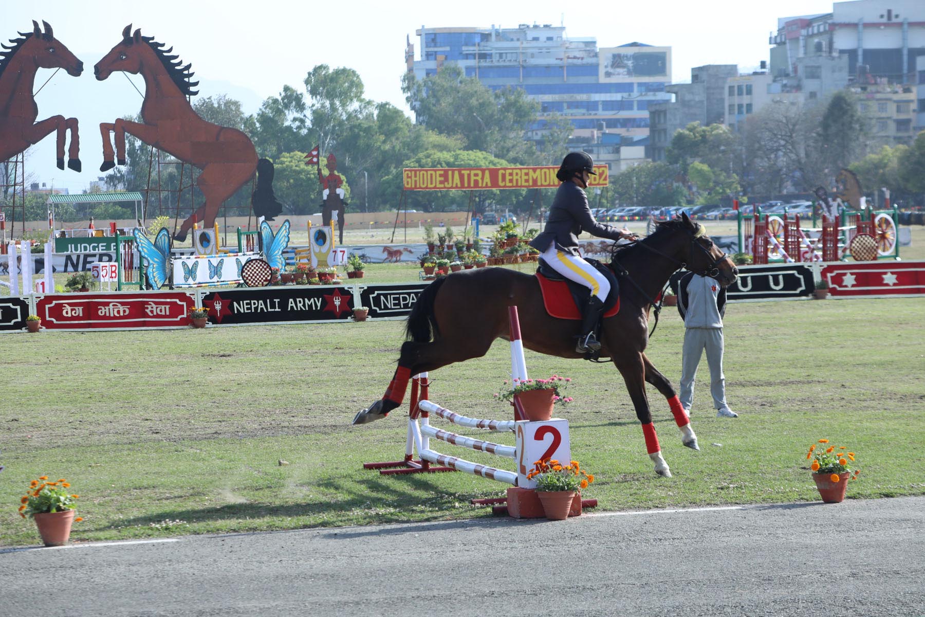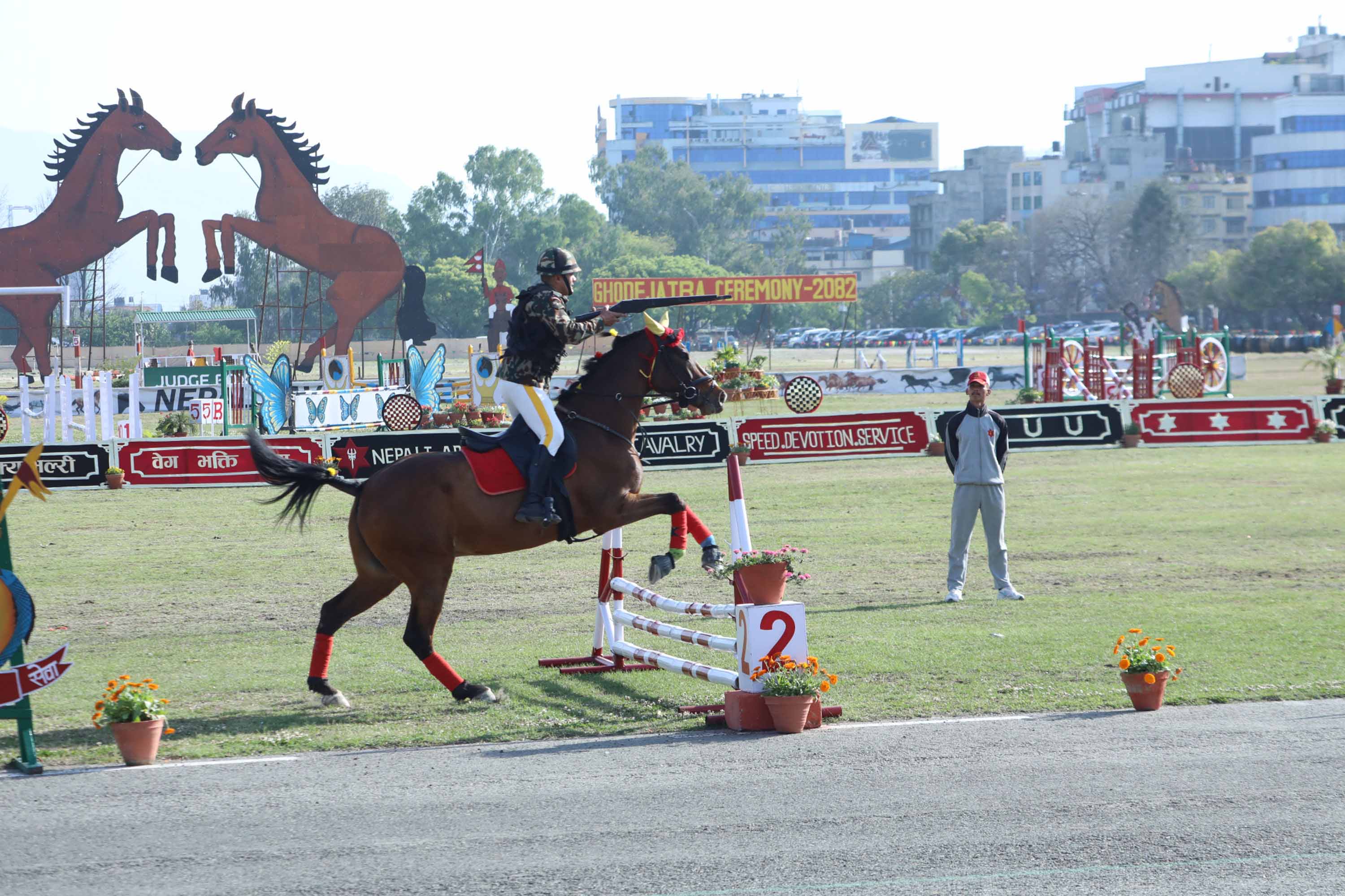 घोडेजात्रामा नेपाली सेनाले घोडाका विभिन्न कला कौशलहरू प्रदर्शन गरेको थियो। नेपाली सेनाले आयोजना गरेको घोडे जात्रा समारोहमा राष्ट्रपति रामचन्द्र पौडेल, उपराष्ट्रपति रामसहायप्रसाद यादव, प्रधानमन्त्री सुशीला कार्की लगाएतका उच्च पदस्थ व्यक्तिहरुको सहभागीता थियो।