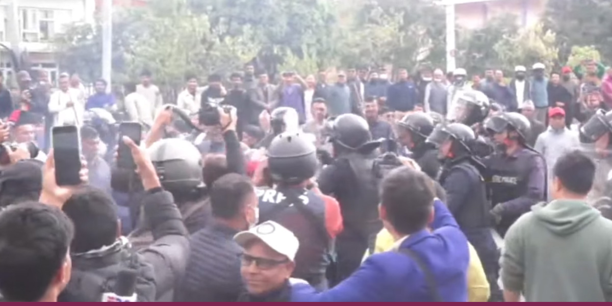 प्रदर्शनकारीहरू निषेधित क्षेत्र तोडेर नयाँ बानेश्वरतर्फ अघि बढ्न खोजेपछि प्रहरीसँग धकेलाधकेल भएको छ। प्रदर्शनकारीहरू जबरजस्ती नयाँ बानेश्वरतर्फ अगाडि बढ्ने प्रयास गरेपछि यो क्षेत्र तनावग्रस्त बनेको छ।