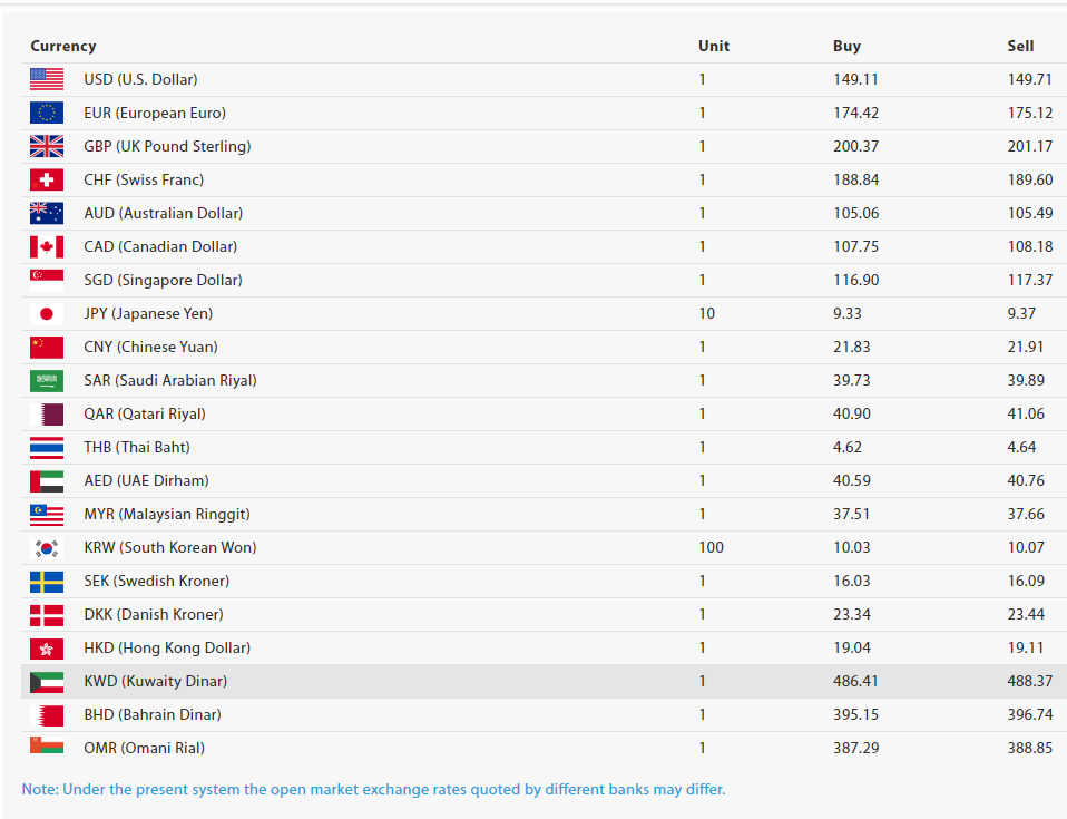 आज कुबेती दिनार १ को खरिदर ४८६ रुपैयाँ ४१ पैसा र बिक्रीदर ४८८ रुपैयाँ ३७ पैसा छ। हिजो कुबेती दिनार १ को खरिदर ४८३ रुपैयाँ २६ पैसा र बिक्रीदर ४८५ रुपैयाँ २२ पैसा थियो।