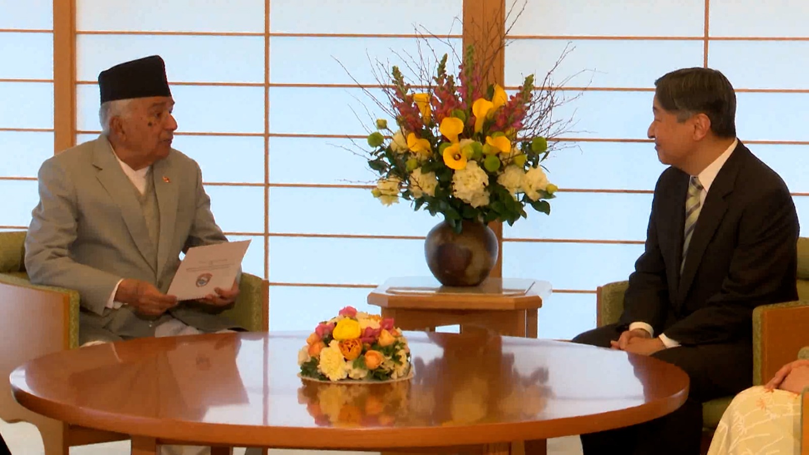 राष्ट्रपति पौडेलले नेपाल सरकार र जनताका तर्फबाट जापान सरकारको सद्भावना र सहयोगका लागि आभार प्रकट गर्दै सम्राट र साम्राज्ञीलाई अनुकूल समयमा नेपाल भ्रमणका लागि निमन्त्रणा गरे।